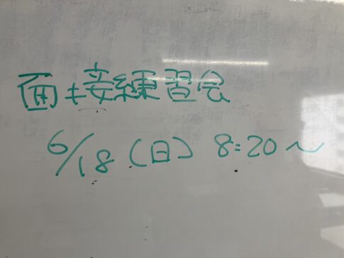 面接練習会2023.6.18 面接練習会を開催しました。参加された受験生の皆さんお疲れさまでした! 今回の面接練習会でのアドバイスを参考に、面接試験で全力を出し切れるよう頑張ってください。応援しています!